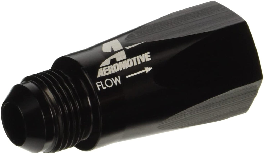 Aeromotive 15107 is a premium automotive AN-style check valve with a male inlet and female outlet.