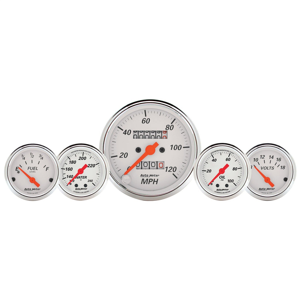 AutoMeter 1311 - Gauge Kit 5 Pc. 3-1/8in. & 2-1/16in. Mech. Speedo. Wtmp & Oilp Arctic Wht