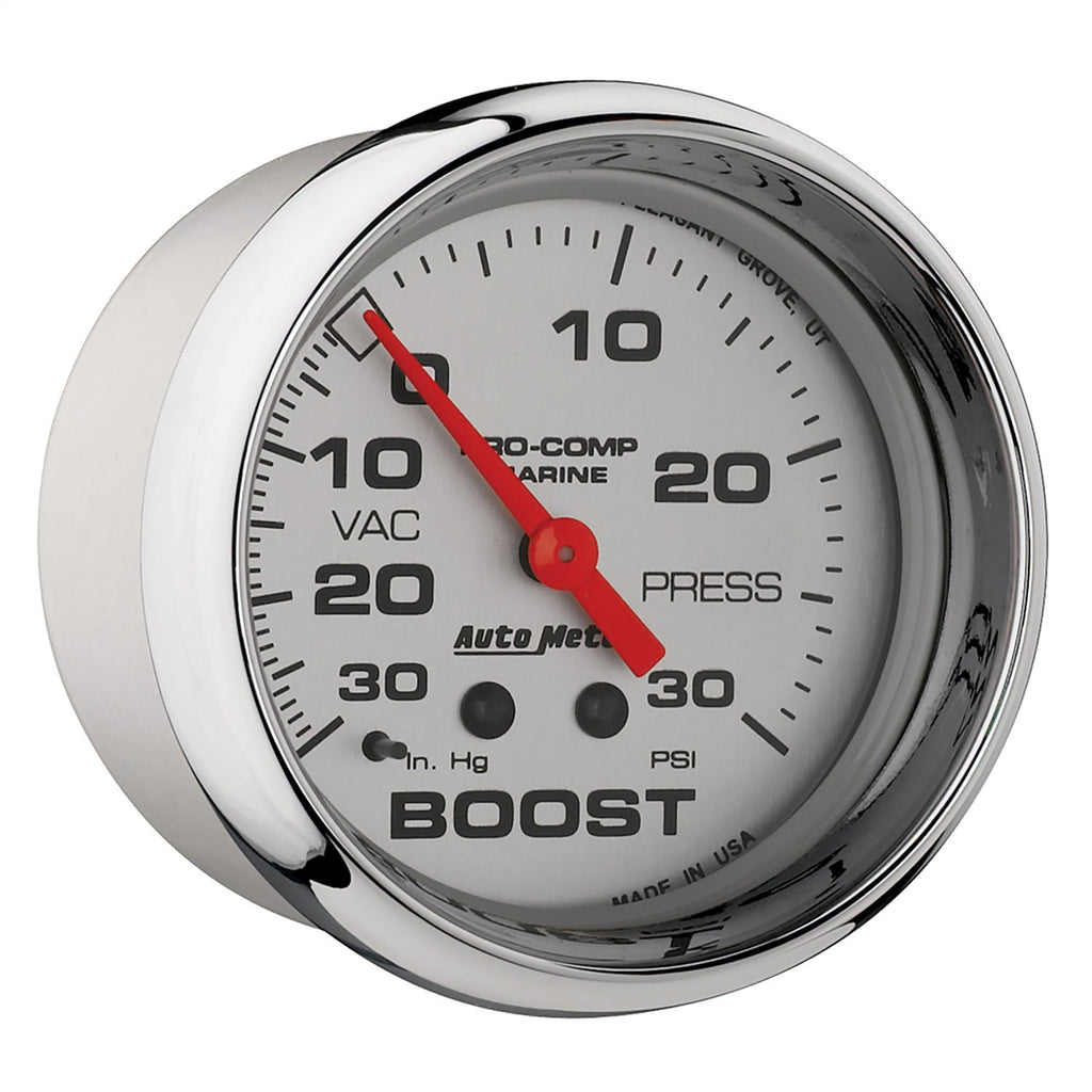GAUGE; VAC/BOOST; 2 5/8in.; 30INHG-30PSI; MECHANICAL; MARINE CHROME