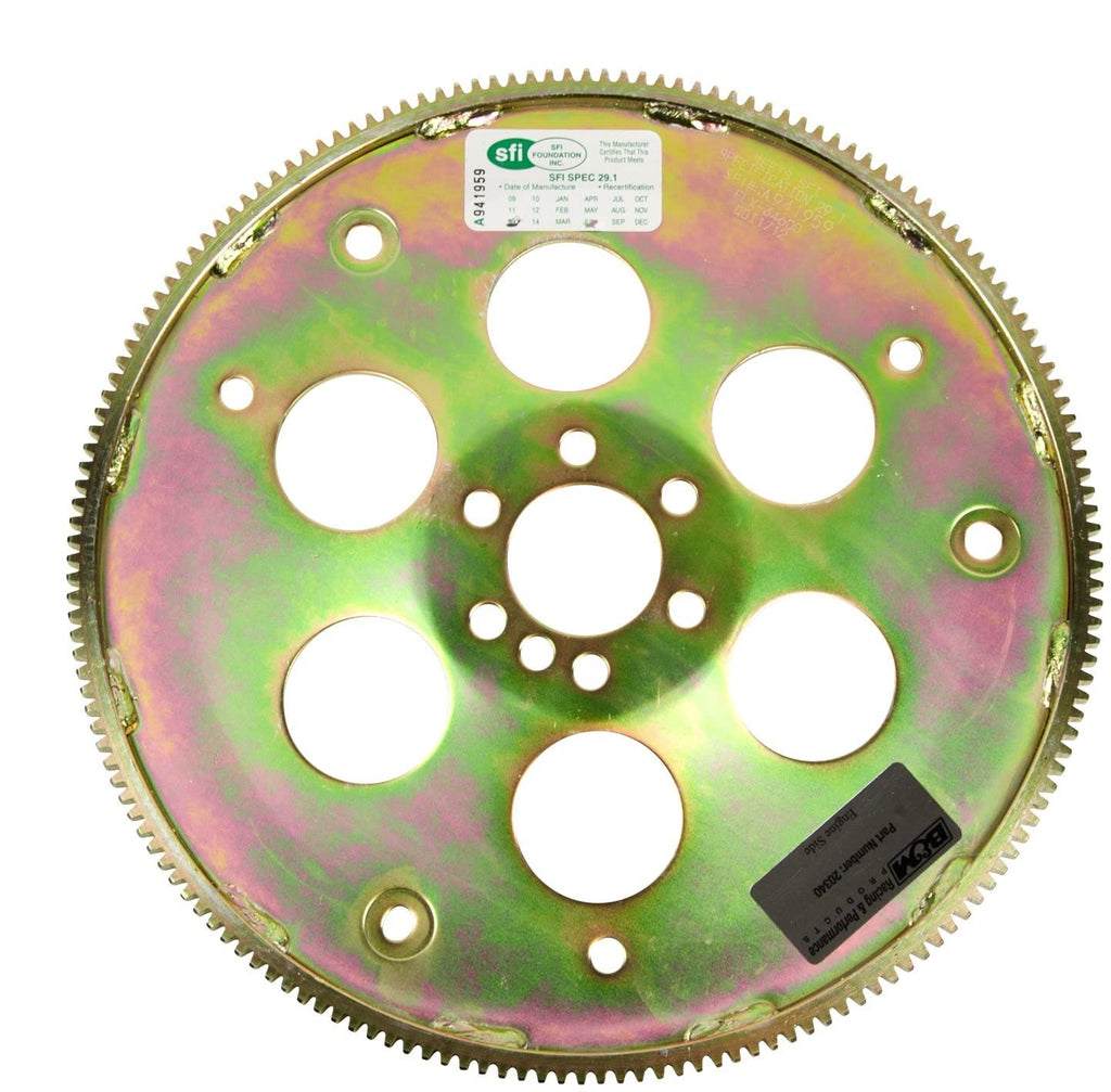 As performance levels increase, an O.E. style flexplate just won't cut it and a stronger option is a necessity to prevent transmission and/or converter failure. B&M has you covered with our high performance flexplate designed for GM 1998-up 4.8L, 5.3L, 5.7L & 6.0L LS engines with 6-bolt crankshaft flange, including 2010-15 Camaro with L99 engine. Features include high tensile strength steel construction to resist elongation and cracking, 10.75 and 11.06-inch converter mounting locations, 168 tooth ring gear with double-sided welds for added strength and comes with SFI 29.1 safety certification insuring the ultimate in safety and performance. The assembly is finished with a Zinc plating and Chromate Conversion Coating for added corrosion resistance and durability. B&M SFI approved flexplates are ideal for extreme duty race applications as well as street cars, tow vehicles or other vehicles needing the added protection and toughness that B&M has been delivering since 1953. Note: Will not fit 1999-00 6.0L applications with 0.400 inch extended crank flange/flat flexplate or 1999-00 4.8L engines that originally came with a manual transmission. A flexplate spacer is required for retrofitting Non LS era transmissions to LS engines.