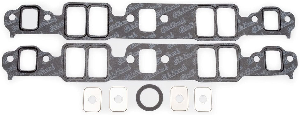 Edelbrock part #7201 Intake Gaskets for 1958-1986 Small-Block Chevy allow for optimum flow and performance. Any gasket can create a seal, but a good gasket can do it with less clamping force, and for a longer period of time. The new MP-2N Micropore technology does not use solvents making our gaskets environmentally friendly. Impervious to most chemicals, this synthetic fiber composite provides a high recovery under load. This means that when compressed, the gasket will conform to any imperfections on the sealing surface even using lower flange pressures. A nitrile bead around each port opening makes the seal even better.