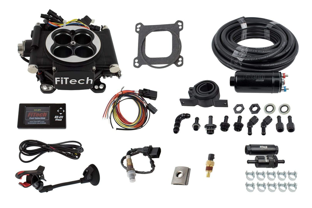 The Go EFI 4 with matte black finish combined with the Inline Fuel Pump Fuel Delivery Kit is rated at 600HP but is suitable for engines from 200HP thru 650HP. This self-tuning fuel injection system is perfect for your everyday Driver right up to your weekend Street Machine or Bracket Racer. It features the fastest most accurate self-learning available, timing control, wet flow annular discharge and tons of additional features.