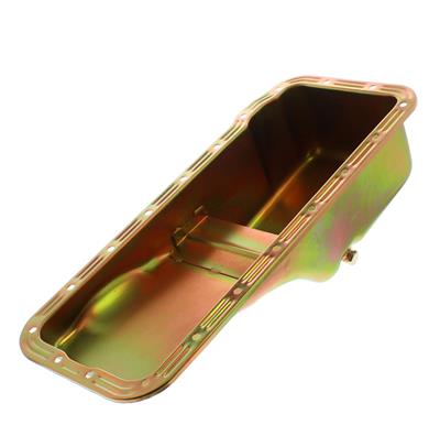 Oil Pan, Steel, Gold Iridite, 5 qt., Ford, FE, Pre-1973 Front Sump Chassis, Int Oil Control Baffles, Each