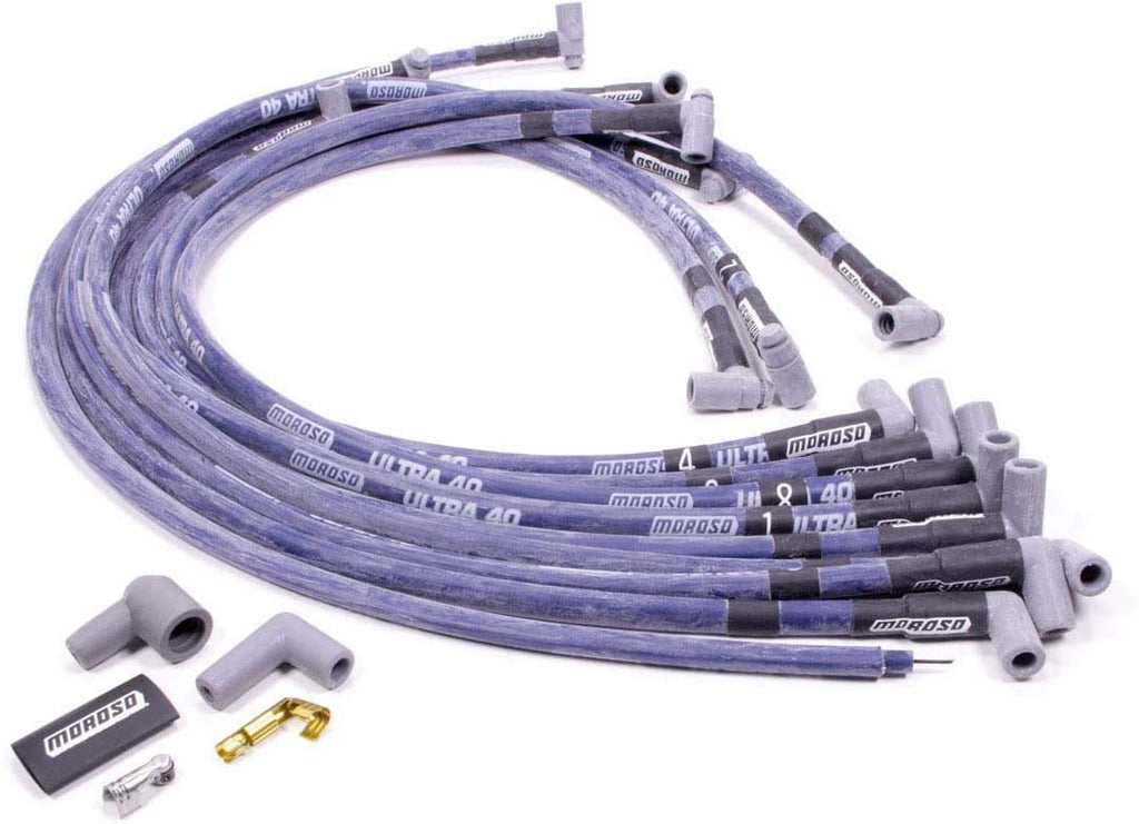 Spark Plug Wires, Ultra 40, 8.65mm, Blue, 90 Degree Boots, Under Header, BBC, HEI, V8, Set