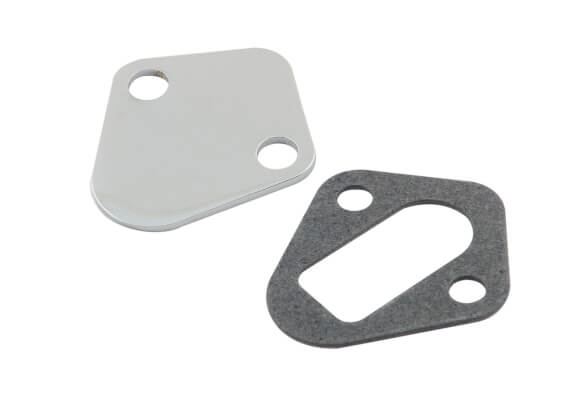 Precision cut to cover stock fuel pump opening when converting to an electric fuel pump. Gasket included.