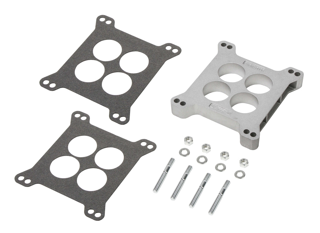 1 inch Ported Center. The Mr. Gasket carb spacer kit is designed to fit the standard Holley/Carter bolt pattern. This precision die cast aluminum spacer kit comes complete with studs, washers, nuts and gaskets.