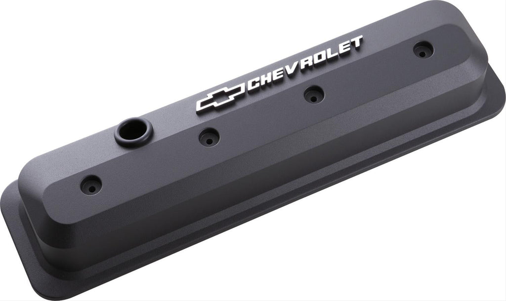 Valve Cover, Cast Aluminum, Black Wrinkled, Raised Chevrolet Logo, Chevy, Small Block, Pair